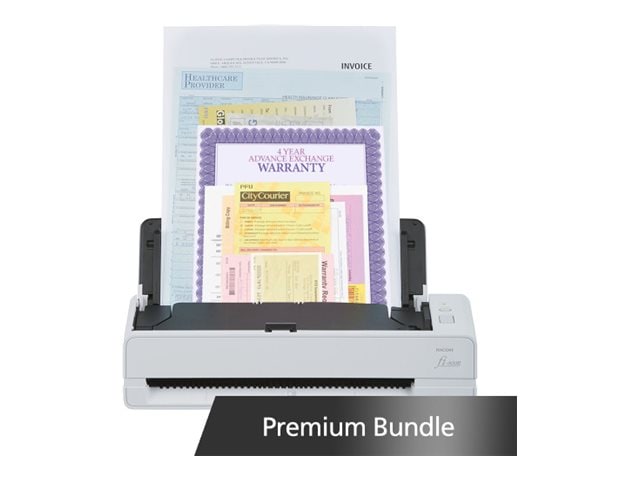 The fi-800R is a compact yet highly efficient document scanner capable of scanning all types of documents including passports and IDs. It includes robust features such as reverse feeding and Active Skew Correction-an industry first! All to provide an agile and efficient scanning experience on even the most crowded of desks. Because of its U-Turn Scan and elimination of the paper exit tray, the fi-800R fits into tight spaces and eliminates the need for multiple scanning devices. The fi-800R scans A4 portrait documents at speeds of 40 ppm/80 ipm (200/300 dpi) and makes customer onboarding easy with its compact size and versatile scanner abilities. Premium Bundle includes a 4-year Advance Exchange warranty.