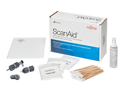 ScanAid is a factory-authorized consumable kit with instructions and cleaning supplies. It provides replacements for consumables that wear during normal use and it serves as a maintenance kit that helps your scanner run at peak performance.