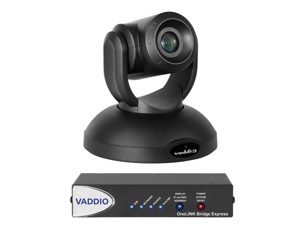 This system combines the RoboSHOT 40 UHD camera with the OneLINK Bridge Express to extend power, video and control over a single cable for simple, tidy installation. Production-quality RoboSHOT 40 UHD provides brilliant 4K video footage for broadcasting or live streaming applications. Key Features Back-illuminated 8.51 Megapixel, ultra-high-definition 1/2.5-type CMOS sensor delivers native 2160p/30 (3840 x 2160) video 20x optical zoom with 30x lossless zoom at 3840 x 2160. Achieve 40x zoom at full HD resolution Genlock signal for multi-camera synchronization Simple, clutter-free camera extension with HDBaseT technology Power, video and control over a single Cat-5e cable up to 230 ft. (70m), or over a Cat-6 cable up to 328 ft. (100m) Bridges audio and video for easy soft-client conferencing Simultaneous HDMI, USB 3.0, and IP Streaming outputs Configurable audio matrix with AEC Up to 1080p/60 resolution available over uncompressed USB New! Vaddio Deployment Tool Simplify installations by viewing all your Vaddio products across a deployment on one screen with the simple click of a button. The Vaddio Deployment Tool enables you to select devices from the network, choose an action like rebooting the device, unmute the audio, or updating firmware and voilà ! â€" remote troubleshooting success. You can even conduct mass firmware updates on hundreds of devices all at once, which saves you a lot of time. Download the Deployment Tool > The production-quality RoboSHOT 40 UHD PTZ camera provides brilliant 4K video footage for broadcasting or live streaming applications. RoboSHOT 40 UHD offers 40x zoom, genlock capabilities, ultra-smooth motor movement, and outstanding image quality â€" all at a surprisingly competitive price for the entry-level broadcast PTZ camera market. Designed with a genlock external sync port, the RoboSHOT 40 UHD camera provides accurate synchronization in multi-camera broadcast environments, plus phase compensation to fine-tune and adjust the genlock signal. In addition to an incredible 30x zoom with 4K resolution at 30fps, it provides full high definition 40x zoom with 1080p/60fps performance with the latest advancements in digital super-resolution zoom. With its 4K Exmor R CMOS image sensor, RoboSHOT 40 UHD offers more powerful image signal processing (ISP) â€" resulting in better light-gathering capabilities, incredible contrast, and sharp 4K video, even in dim lighting conditions. Expect exceptional performance in the presence of high-intensity spotlights seen in performance halls, live event venues, and night-time outdoor sporting events. RoboSHOT 40 UHD offers silky-smooth, silent pan-tilt-zoom motion, thanks to Vaddio†s next-generation silent motors paired with Tri-Synchronous motion algorithms. Even at full zoom, the RoboSHOT 40 UHD moves with no jitter or bouncing. OneLINK Bridge Express connects a non-USB camera and audio source, and bridges to a USB stream for easy connection to USB-based conferencing applications such as Microsoft Teams, Google Meet, and Zoom. Along with the bridging capabilities, the system†s OneLINK Bridge Exress Receiver for HDBaseT Cameras extends HD video, 100BaseT Ethernet, RS-232, and power up to 328 ft (100 m) on a single Cat-5e/6 cable. The RoboSHOT 40 UHD broadcast-quality PTZ camera is ideal for these applications: Broadcast TV, corporate broadcast, local TV stations, campus news Churches, houses of worship Live events Sporting events such as high school football or soccer Large auditoriums Concert halls This Package Includes: RoboSHOT 40 UHD camera (black or white) Thin Profile Wall Mount (black or white) with mounting hardware Vaddio IR Remote Commander OneLINK Bridge Express Interface Quick-Start Guides 48V power supply with AC cord set(s) EZCamera RS-232 Control Adapter 4 qty 3-position phoenix-style connectors 6 ft. (1.8m) USB 3.0 cable, type A to B 12V power supply with AC cord set(s) EZCamera RS-232 Control Adapter.
