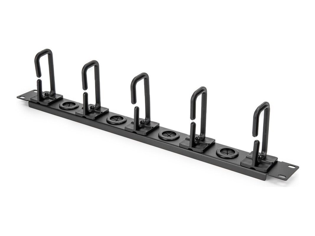 The Rocstor rack cable organizer is designed to maintain a clean and efficient workspace. Its durable construction features a combination of steel and plastic materials, ensuring long-lasting performance. With five hooks available, it provides ample space for effective cable management, preventing tangles and promoting organization.