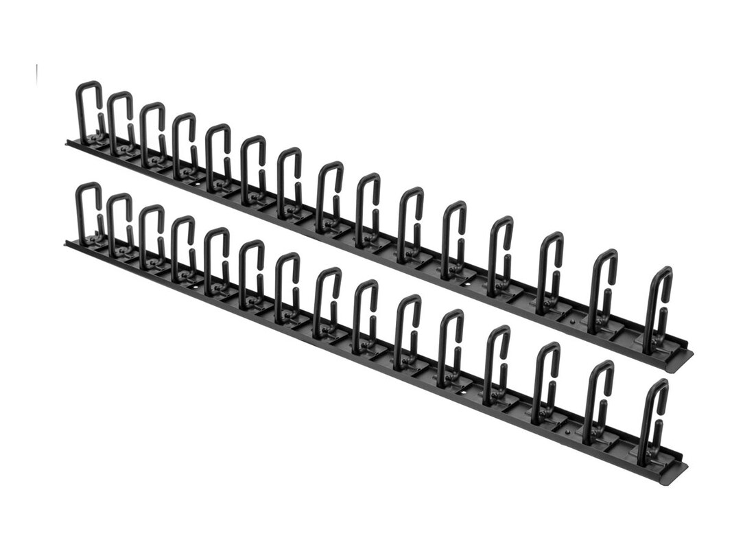 The Rocstor rack cable organizer is designed to provide effective cable management for any setup. This product comes with two vertical cable organizers that can hold wires securely while minimizing clutter. Featuring a robust steel frame, this organizer includes D-ring hooks and plastic rings for additional functionality, making it suitable for various applications. With a height of 40 rack units, it offers space to keep cables neatly arranged, improving accessibility and organization in any environment.