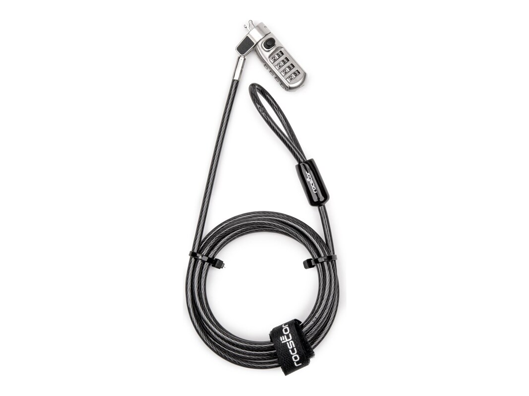 The Rocstor Rocbolt W25 is designed to provide security for notebooks with its slim and durable combination lock. Constructed from sturdy carbon steel and plastic materials, this security cable lock features a noble wedge slot for increased compatibility and ease of use. The 4 digit code ensures a customizable security option while the zinc plated finish offers resistance to corrosion for reliable performance over time.