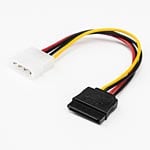 Rocstor Premium 6in SATA Power Adapter Cable can power a SATA hard drive from a conventional LP4 power supply connection. The 4 Pin Molex – LP4 (male) Connector at one end, to a Left Angled SATA Power cable (female) allows you to power a Serial ATA hard drive from a standard LP4 connection without having to upgrade the computer’s power supply for compatibility with the SATA hard drives. Designed to fit in small places which eliminates any strain on the connector or the cable.