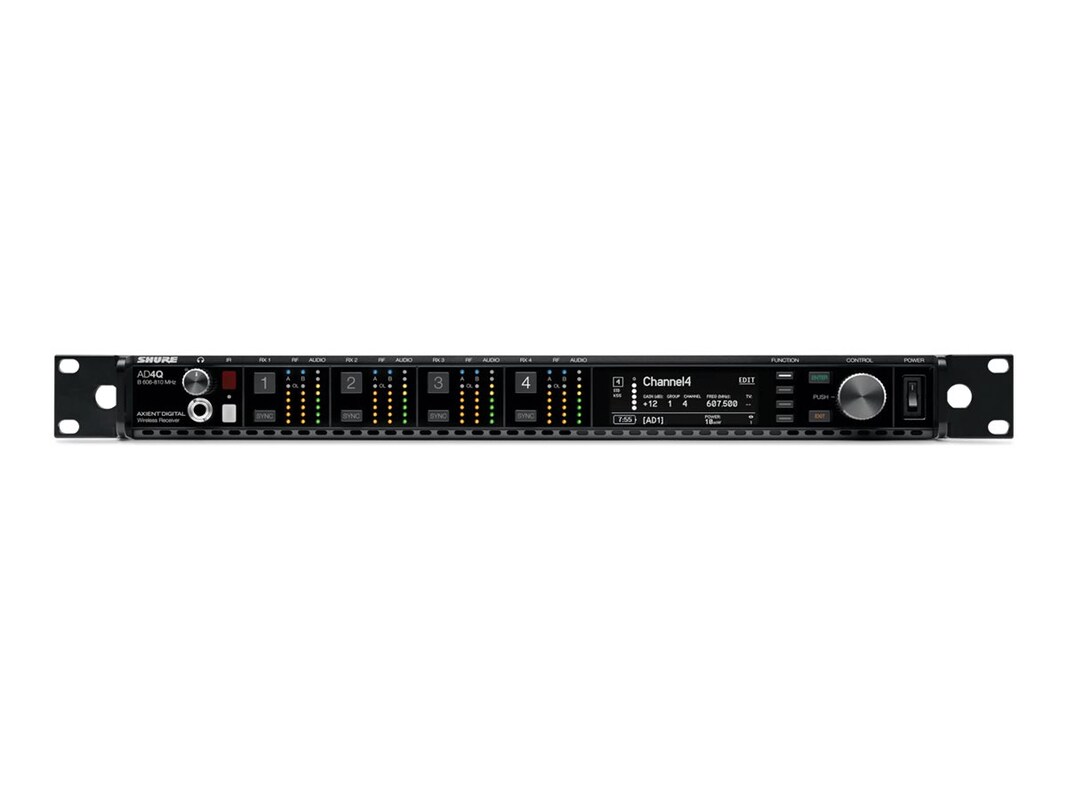 The AD4Q four-channel digital receiver sets a new standard in spectral efficiency. Groundbreaking performance features include wide tuning, low latency, High Density (HD) mode, and Quadversity, ensuring solid performance in the most challenging RF environments. Networked control, AES3 + AES67 + Dante output, and signal routing options bring a new level of management and flexibility to your entire workflow.