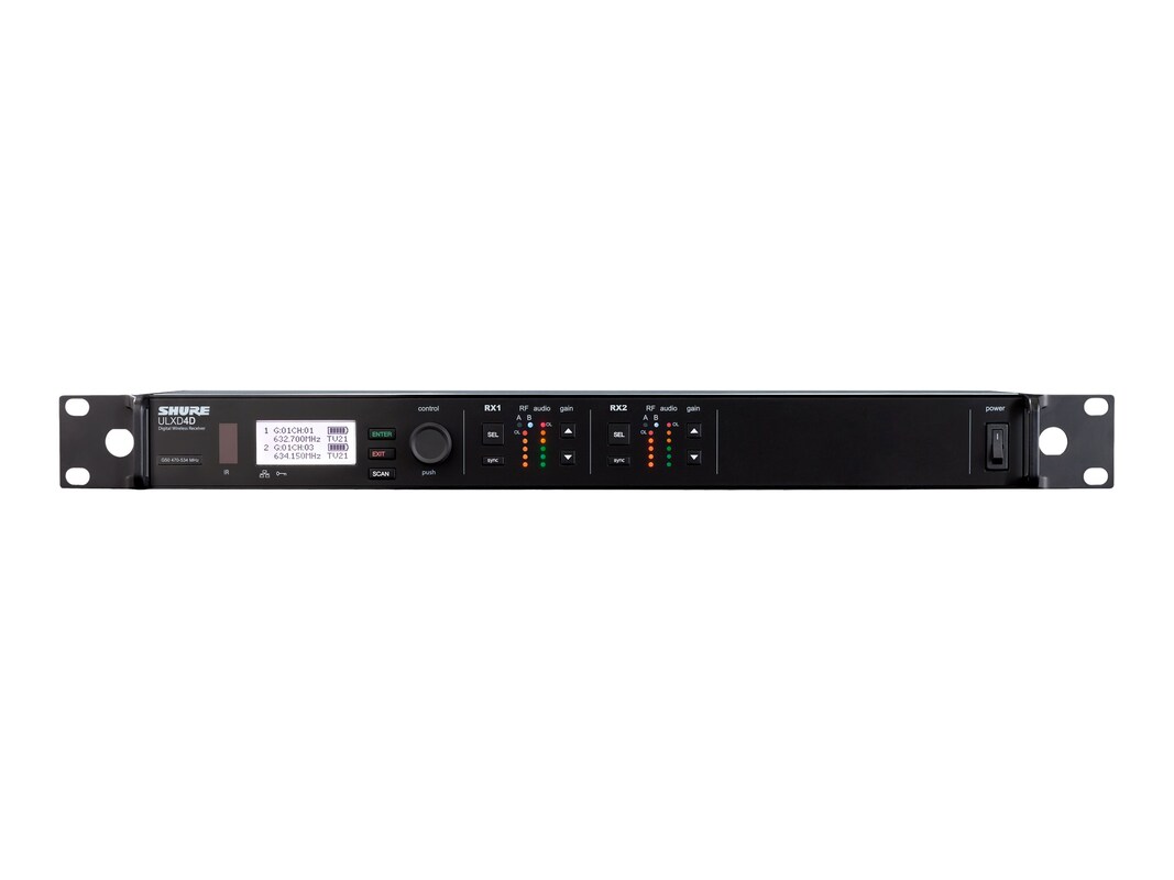 Digital dual wireless receiver offers an intelligent dual-channel, option for use in any professional sound reinforcement application. Features include Digital Predictive Switching Diversity, 72 MHz tuning range, and AES 256 encryption for security.