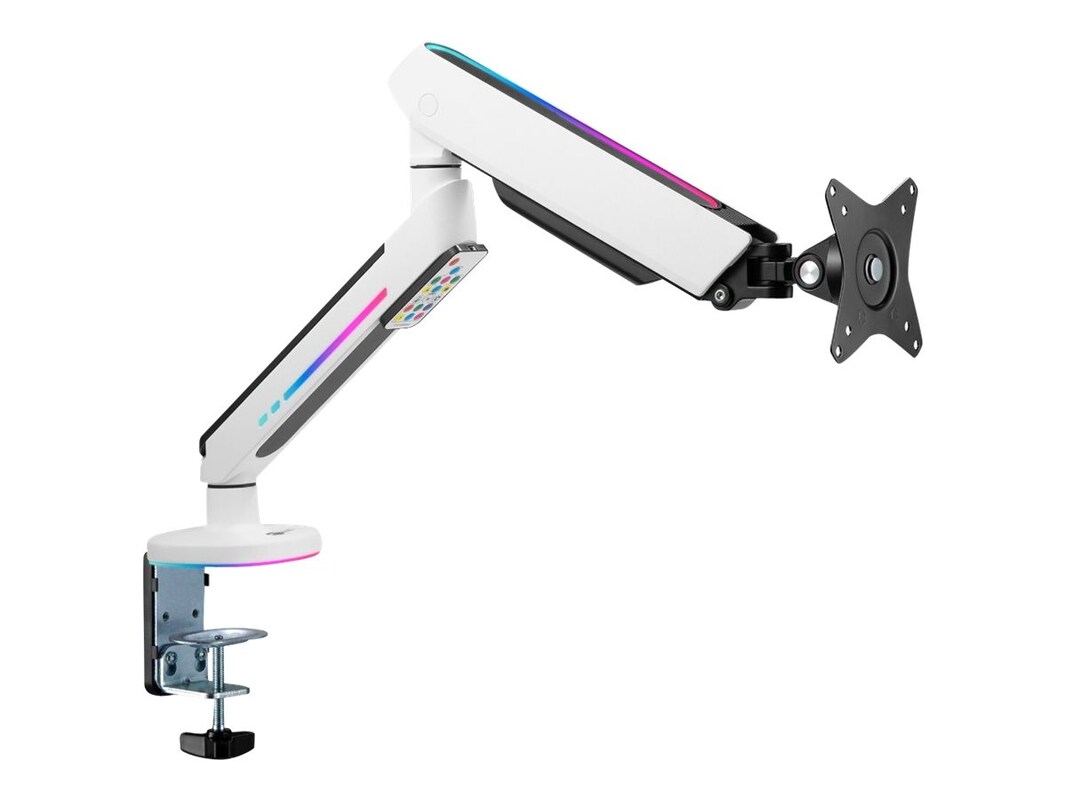 Color: WhiteManufacturer Product Line: SIIGMaterial: AluminumModel: Premium Single-Monitor Arm Desk Mount with Gaming RGB LightingProduct Type: Mounting kitWeight Taxonomy: 8lbs