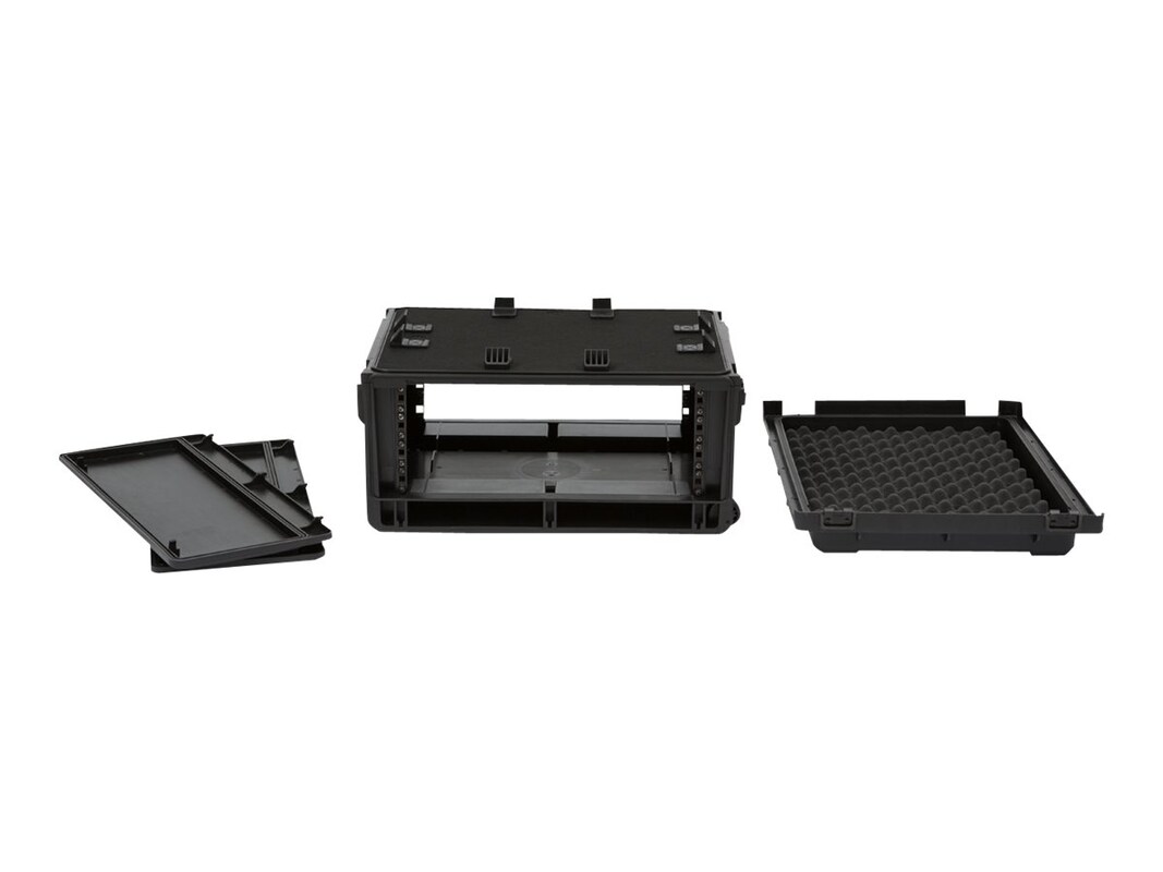 The big brother of the 1SKB-iSF2U! This case features a virtually indestructible, waterproof injection molded shell that is lighter, stronger, and more affordable than the previous 4U Studio Flyer, and includes innovative molded-in front and rear rack rails that provide even more security and durability for sensitive studio equipment during travel. As a larger Studio Flyer option, the 1SKB-iSF4U offers a 4U rack mount measuring 15" from front rail to rear rail which safely accommodates deeper equipment, such as the Universal Audio Apollo audio interface. It also provides a 21" x 15.5" adjustable work surface with ample room for laptops or monitors, and a specially molded exterior pattern that stacks securely with all SKB Roto Racks for maximum transport convenience.