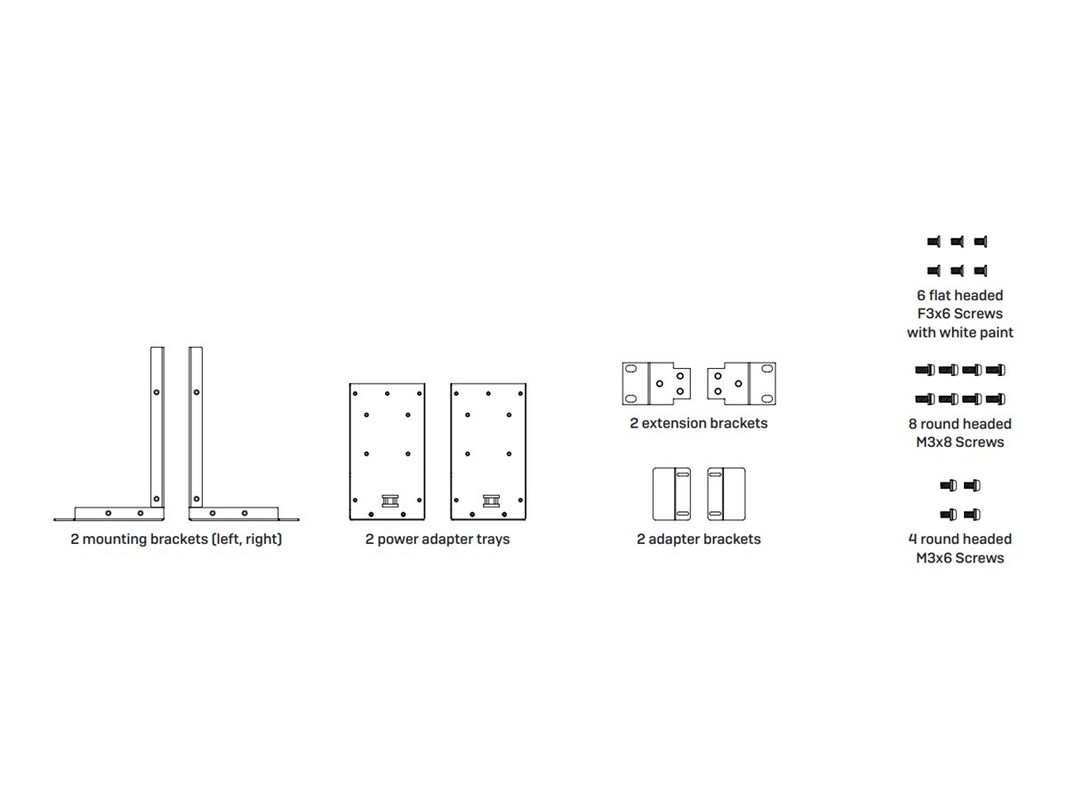 The Sophos network device mounting kit provides an organized solution for mounting a variety of network devices in a rack. This kit includes all essential items for installation, making it straightforward to set up and manage devices efficiently. The inclusion of mounting brackets, screws, adapter brackets, power adapter trays, and extension brackets ensures versatility and ease of use in any network environment.
