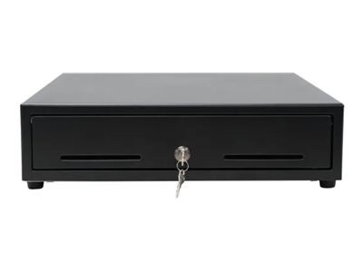 The Star Max Series CD5-1617BK55-DU-S2 electronic cash drawer is designed for efficient cash management in retail environments. Constructed from durable steel, it ensures longevity and security, while the integrated key lock provides peace of mind. The adjustable till includes 5 bill slots and 5 coin slots, offering flexibility to accommodate various currency needs. It features two media slots for added functionality. Equipped with both printer and USB interfaces, this cash drawer facilitates seamless connectivity to various point-of-sale systems, making it an ideal choice for any business looking to streamline cash handling.