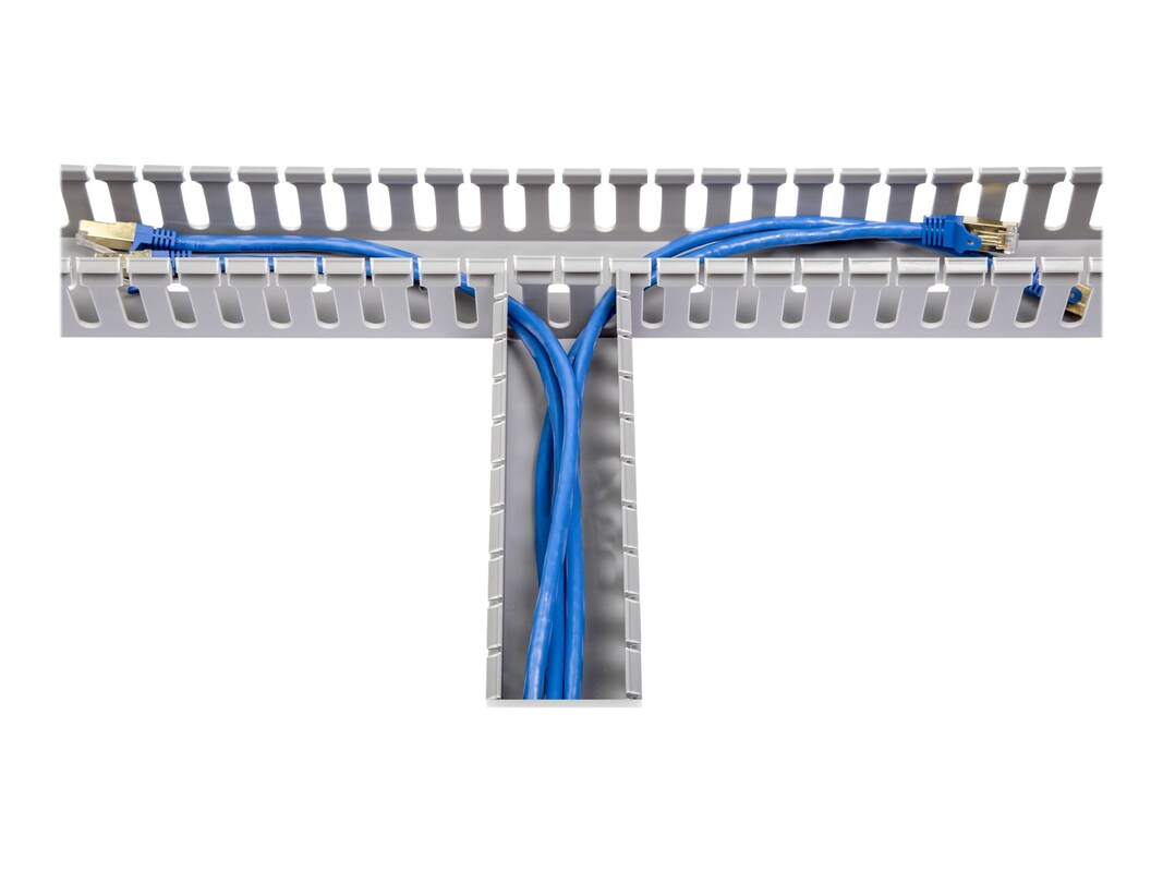 Color: GrayColor Family: GrayLength: 6.6ftManufacturer Product Line: StarTech.comModel: Server Rack Cable Management - 2x2in - Open Slot Network & Data Cable Raceway - Finger Duct Cable Management w/ Cover (AD2X2)Product Type: Cable raceway