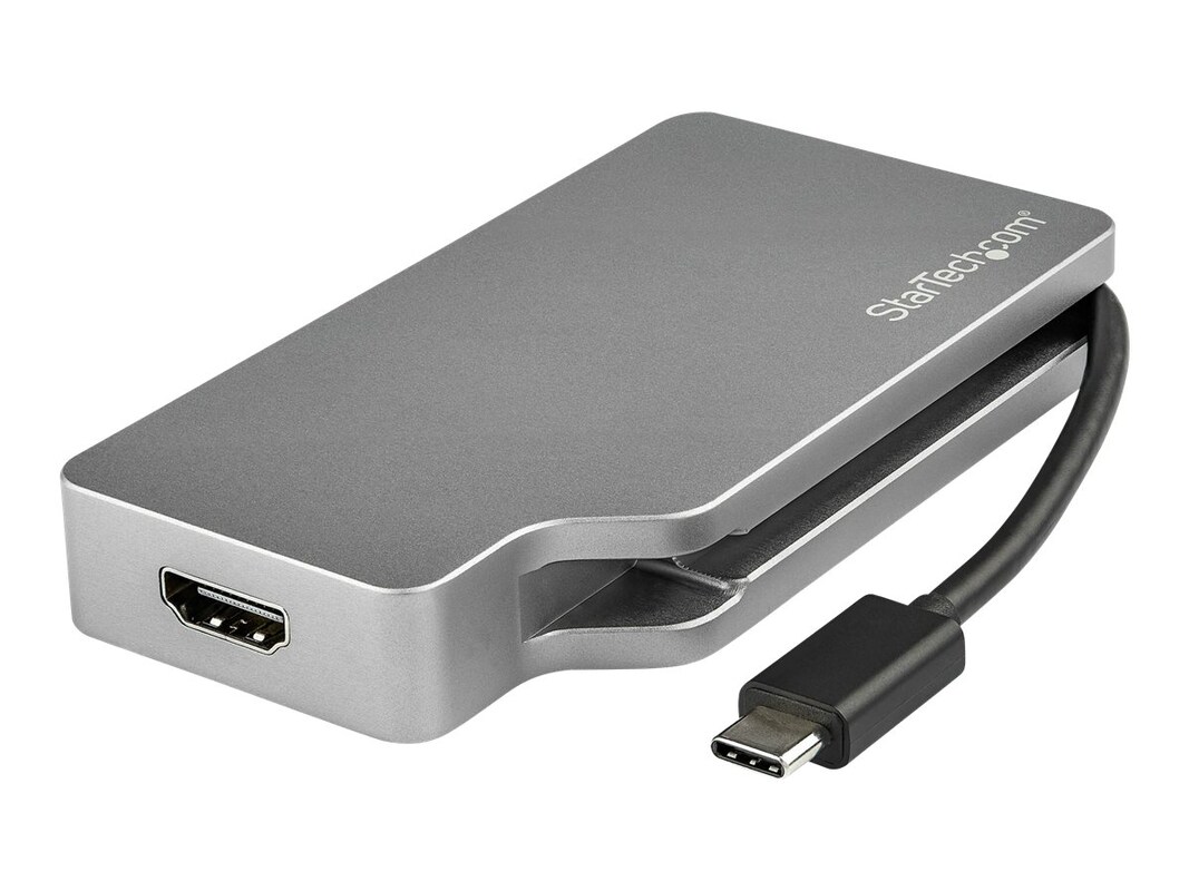 Color: Space grayColor Family: GrayLength: 4.1inManufacturer Product Line: StarTech.comModel: USB C Multiport Video Adapter with HDMI, VGA, Mini DisplayPort or DVI, USB Type C Monitor Adapter to HDMI 2.0 or mDP 1.2 (4K 60Hz), VGA or DVI (1080p), Space Gray Aluminum - 4-in-1 USB-C Converter