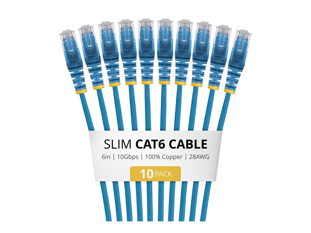 StarTech.com CAT6 Snagless Slim Ethernet Cable, Blue, 6", 10-Pack