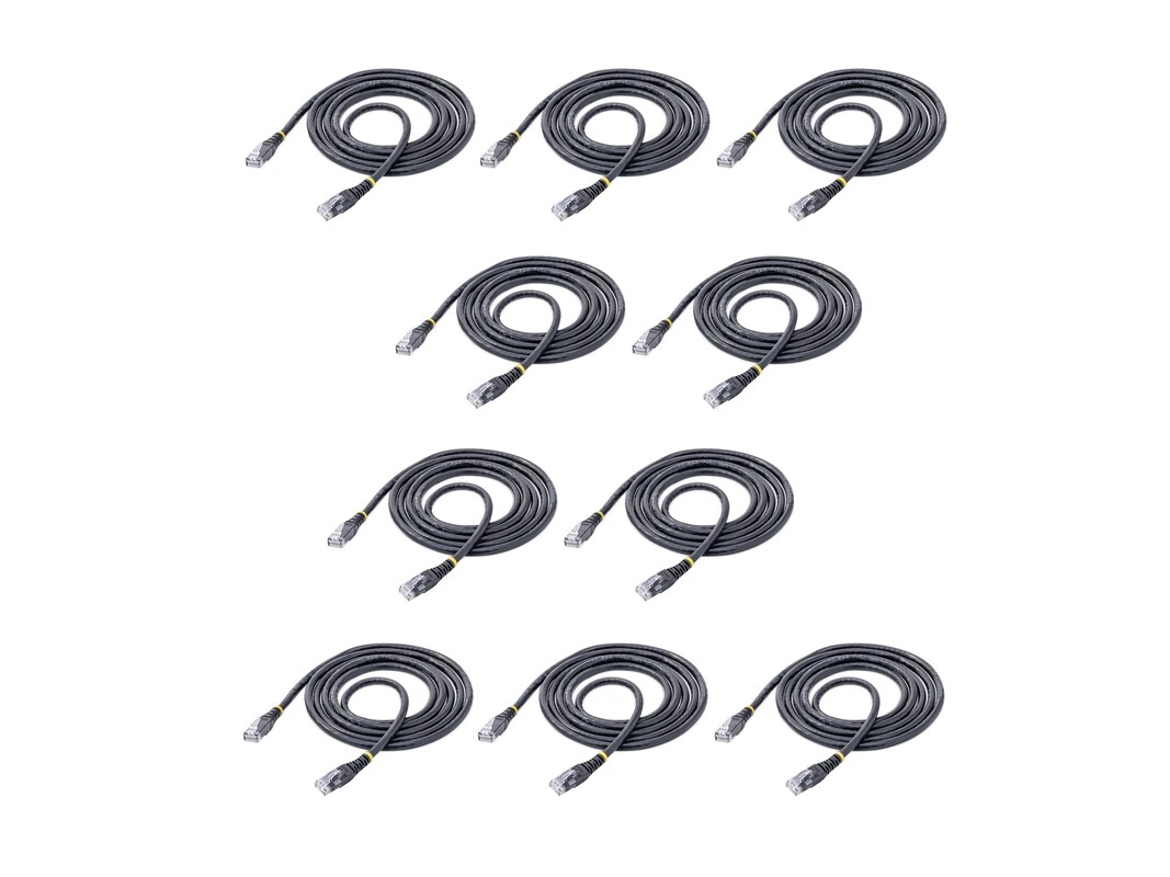 Color: BlackColor Family: BlackLength: 100ftLength: 6ftManufacturer Product Line: StarTech.comMaterial: PVCModel: 6ft CAT6 Ethernet Cable, 10 Gigabit Molded RJ45 650MHz 100W PoE Patch Cord, CAT 6 10GbE UTP Network Cable with Strain Relief, Black, Fluke Tested/UL Certified Wiring, 10 Pack - Category 6, 24AWG, TIA (C6PATCH6BK10PK)Weight Taxonomy: 0.74oz