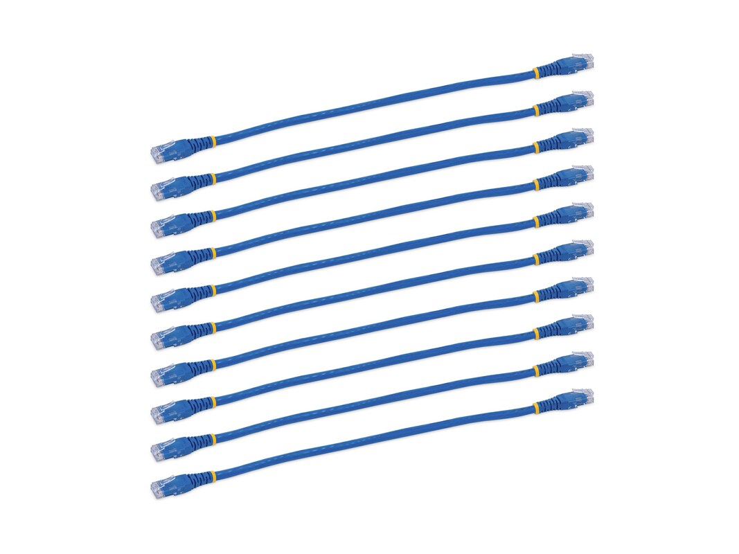 Color: BlueColor Family: BlueLength: 1ftLength: 100ftManufacturer Product Line: StarTech.comMaterial: PVCModel: 1ft CAT6 Ethernet Cable, 10 Gigabit Molded RJ45 650MHz 100W PoE Patch Cord, CAT 6 10GbE UTP Network Cable with Strain Relief, Blue, Fluke Tested/UL Certified Wiring, 10 Pack - Category 6, 24AWG, TIA (C6PATCH1BL10PK)Weight Taxonomy: 0.71oz