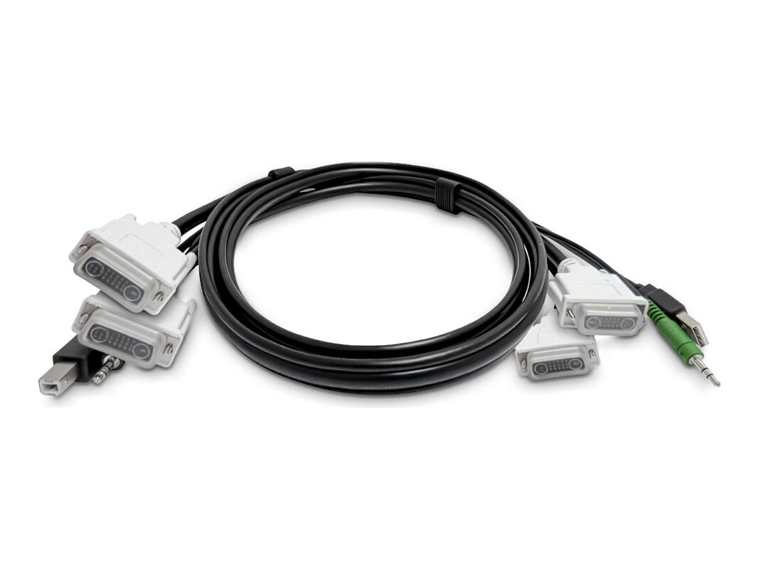 This KVM cable provides a reliable connection between a DisplayPort and HDMI-enabled computer and a DisplayPort and DVI-enabled KVM switch, with USB 2.0 and 3.5mm audio support.
