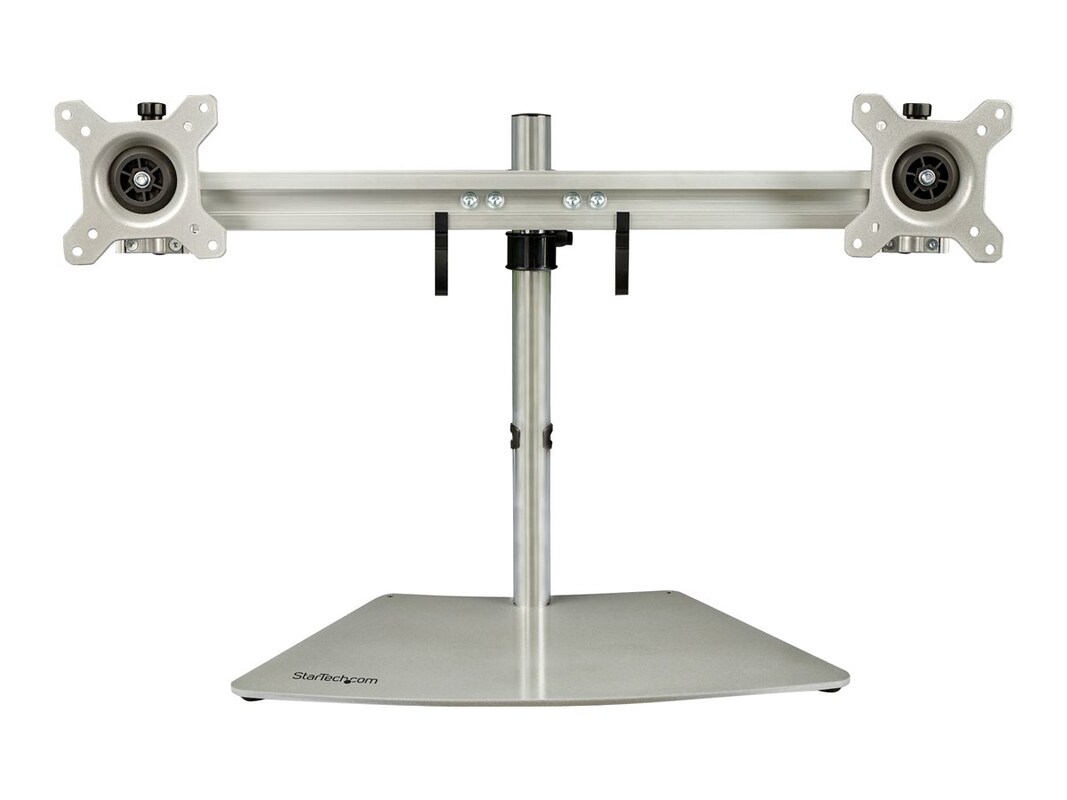 Color: BlackColor: SilverColor Family: BlackColor Family: SilverManufacturer Product Line: StarTech.comMaterial: AluminumMaterial: PlasticMaterial: SteelModel: Dual Monitor Stand, Ergonomic Free Standing Dual Monitor Desktop Stand for two 24" VESA Mount Displays, Synchronized Height Adjustable, Double Monitor Pole Mount, Silver - Double Monitor Holder (ARMDUOSS)Product Type: StandTarget Use: Flat panel displayWeight Taxonomy: 13.67lbs