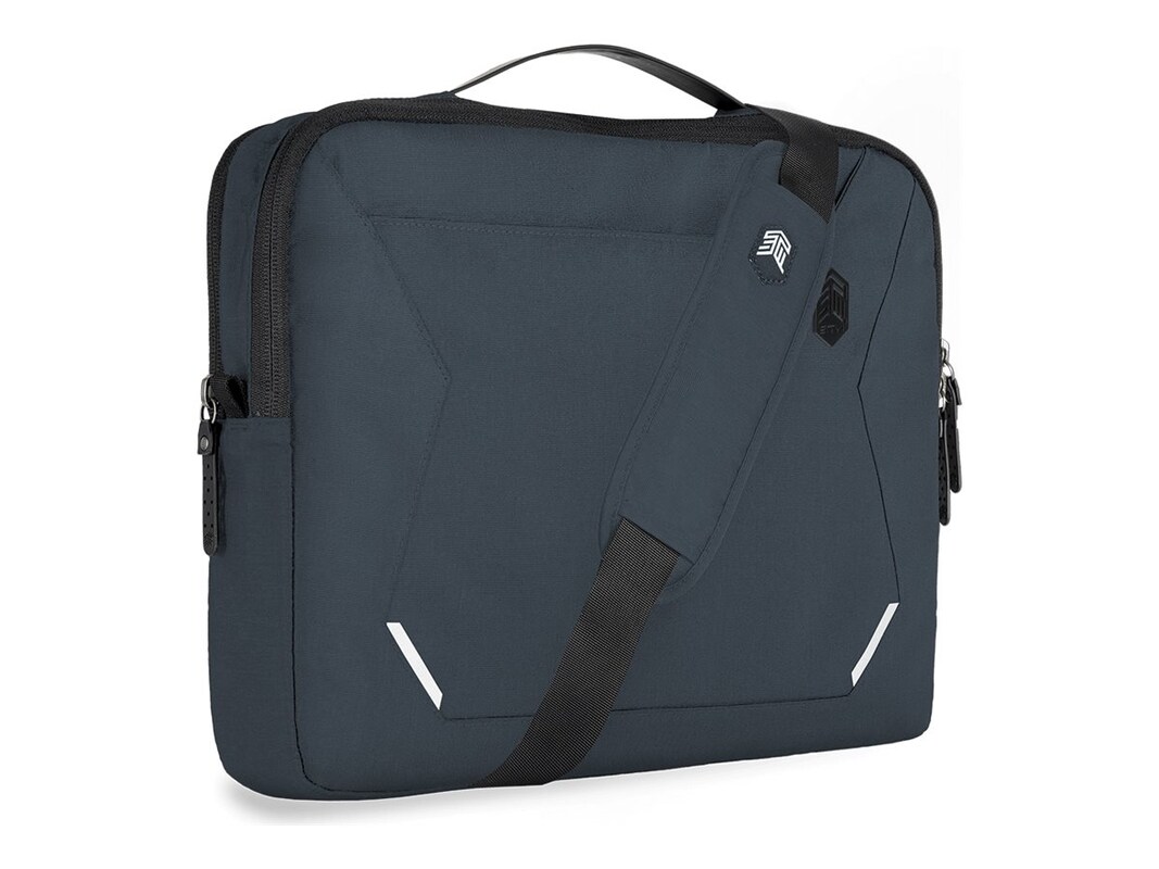 Discover the STM Myth laptop brief, a blend of style and functionality for the modern professional. This notebook carrying case, designed by STM Goods, fits notebooks up to 16 inches, offering a snug and secure fit for your device. With an 8-liter capacity and specialized compartments for both a tablet and earbuds, it ensures that all your tech essentials are organized and accessible. The case is crafted from durable polyester, featuring moisture-proof and water-repellent properties to protect your gadgets from the weather. The interior is lined with soft fleece, providing an extra layer of protection against scratches. For your carrying comfort, the STM Myth includes an adjustable shoulder strap and a top carry handle, along with webbing handles for multiple carrying options. Whether you're commuting to work or traveling for business, this laptop brief combines practicality with a sleek, professional look.
