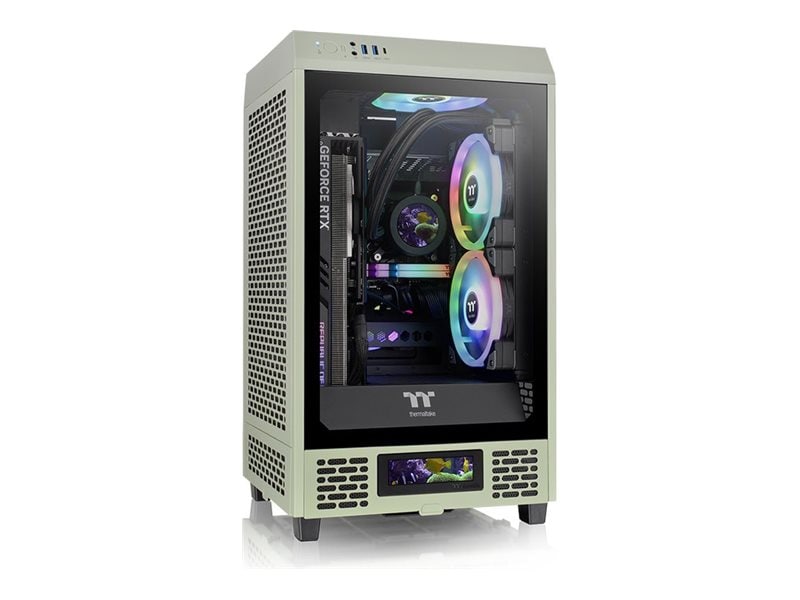 Attributes: Bottom dust filterAttributes: Dismantlable modular designAttributes: Rear dust filterAttributes: Side panel dust filterAttributes: Top panel dust filterAttributes: Vertical graphic card orientationAttributes: VGA bracketChassis Form Factor: TowerColor: Matcha greenManufacturer Product Line: Thermaltake The TowerModel: 200Weight Taxonomy: 16.98lbs