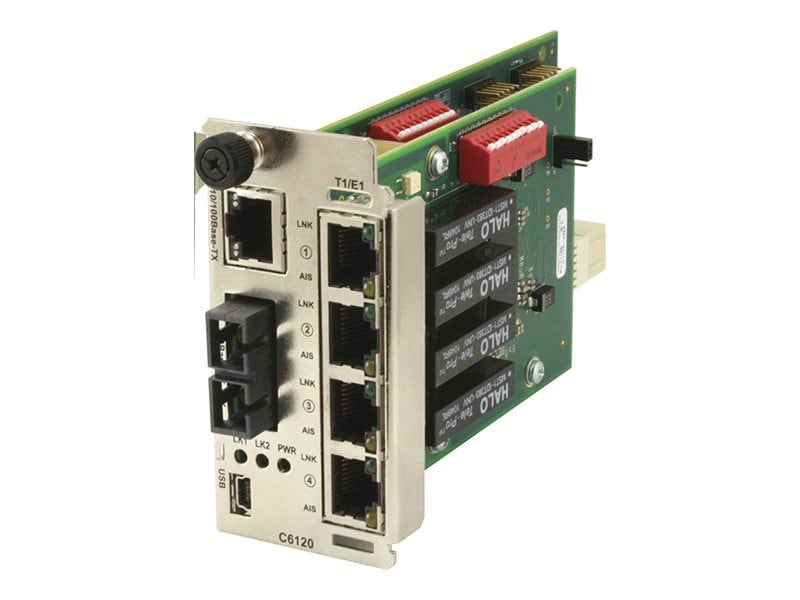 The C6120 is a managed media converter module and provides a solution for those users that need to extend multiple T1/E1/J1 connections. The device is available in versions that support fixed fiber connectors as well as SFP fiber modules offering support for a variety of fiber types, distances, and wavelengths to provide maximum flexibility across a variety of network topologies.