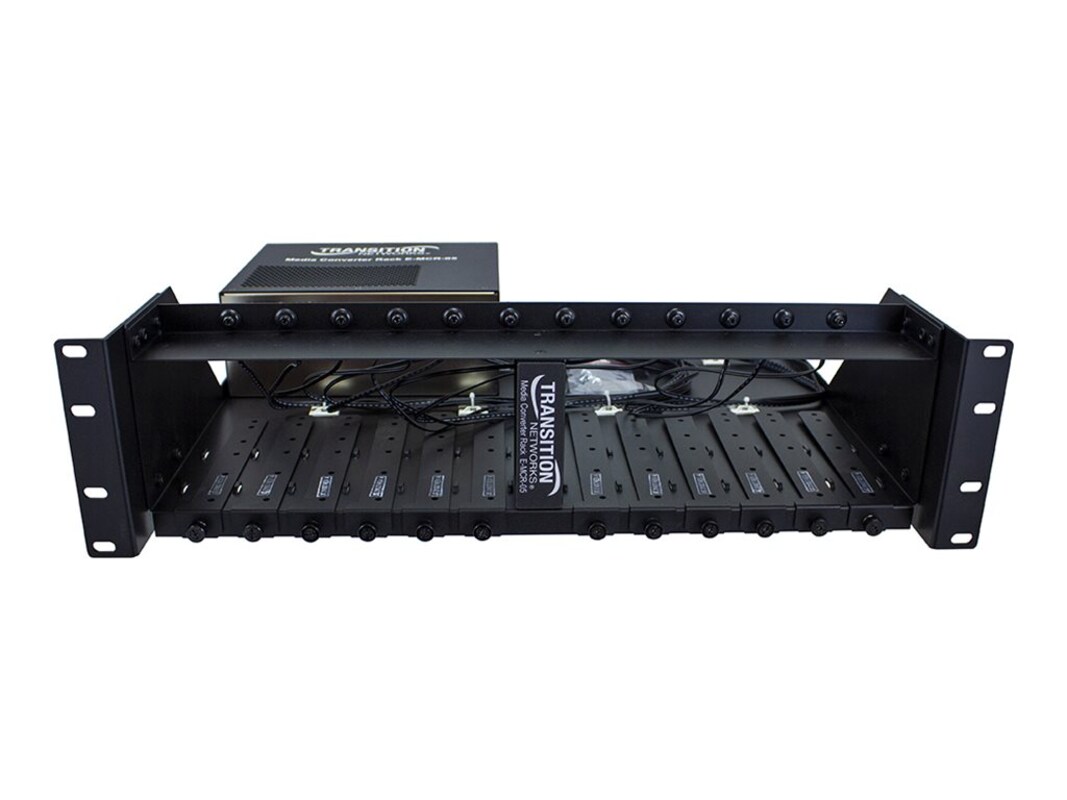 The Lantronix E-MCR-05 media converter rack is designed for efficient management and organization of up to 12 media converters. It features a robust rack mounting chassis that accommodates a standard 19-inch rack size, ensuring compatibility with various setups. The included power supply and universal rack mount media converter brackets make installation straightforward, allowing for seamless integration into existing infrastructures. Operating within a range of 0°C to 50°C and a humidity level of 10 - 90% (non-condensing), this rack is engineered to perform reliably across various environmental conditions. The E-MCR-05 is compliant with several important standards, including FCC Class A and UL certifications, ensuring it meets essential safety and performance criteria. Its TAA compliance further adds to the versatility, making it suitable for various applications in different sectors.