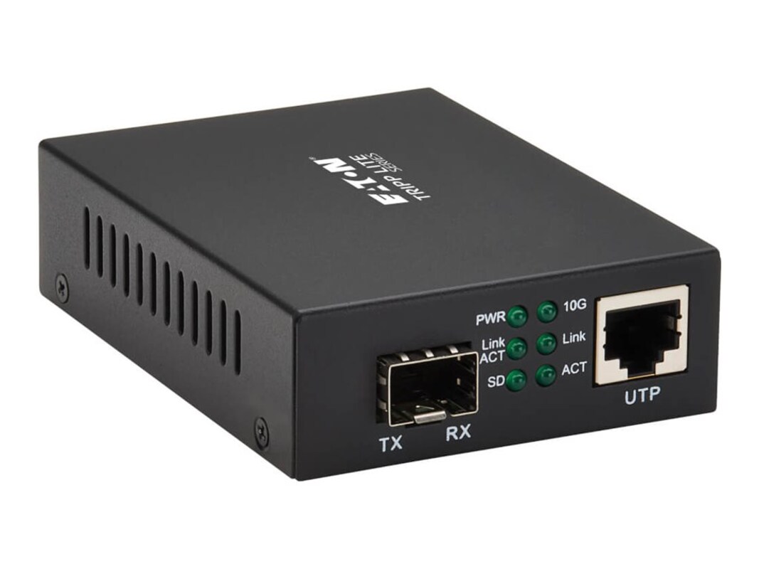 This network media converter works with a variety of SFP and SFP+ transceivers to convert a copper Gigabit Ethernet signal to fiber optic and extend it to a second network device. The customizable SFP port supports both singlemode and multimode transceivers, allowing your network connection to reach hubs, switches and other devices located up to 80 kilometers (50 miles) away. The N786-001-SFP is ideal for network engineers migrating toward higher-density data centers.
