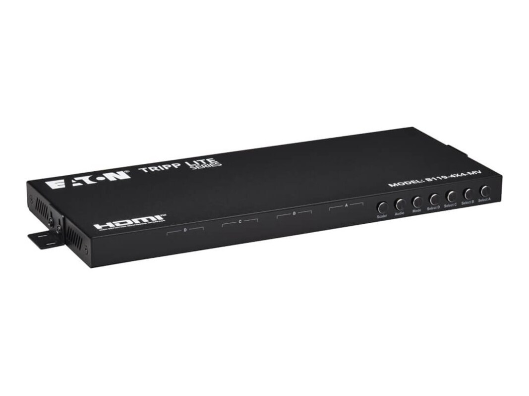The B119-4X4-MV is a versatile HDMI matrix switch designed for control rooms, classrooms, corporate AV and digital signage environments. It allows you to route any of four HDMI inputs to any of four outputs, or monitor all sources simultaneously using quad-view. With seamless switching, built-in scaling and multiple display modes, this switch has been tested across more than fifty devices, including Apple TV 4K, PS5, Roku, Xbox Series X, 8K desktops and a wide range of 4K/1080p televisions and monitors.