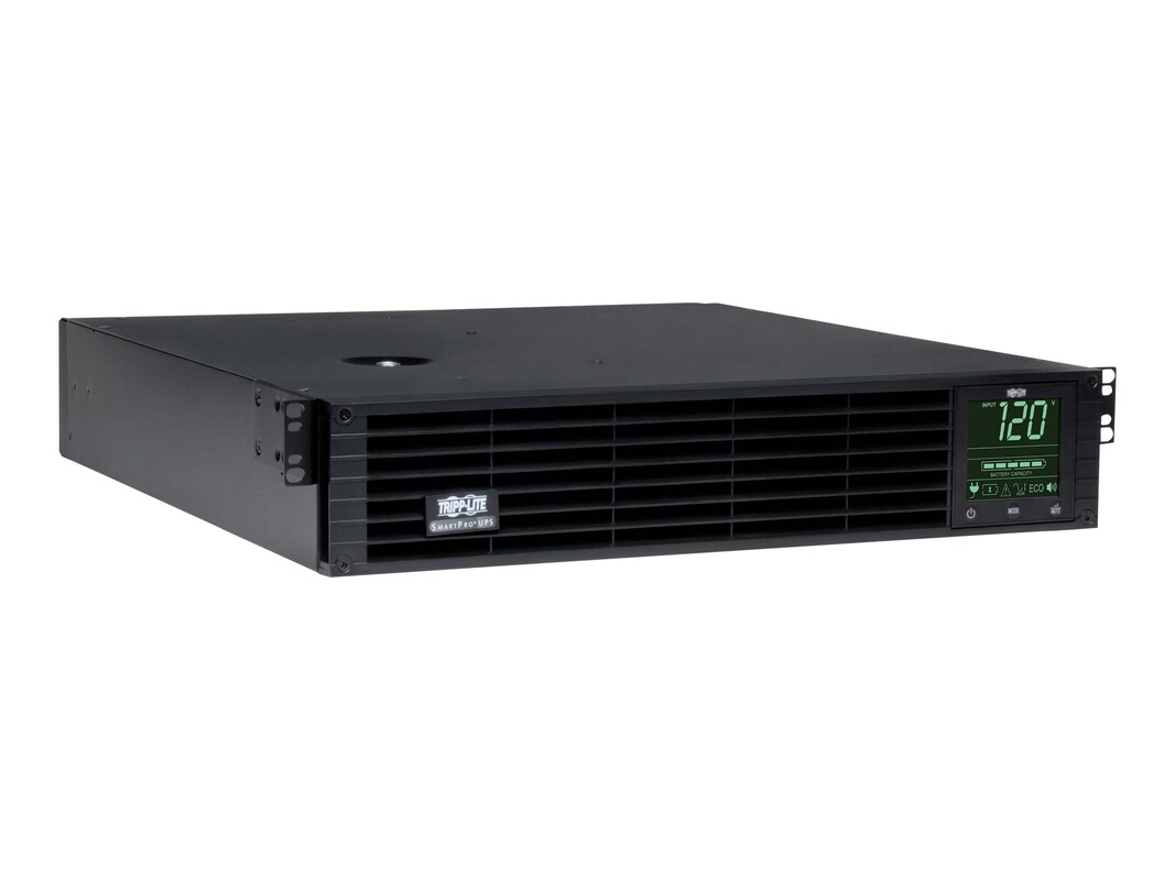 Tripp Lite SmartPro Line Interactive UPS with enhanced LCD interface offers network-grade power protection for critical server, network and telecommunications equipment. Line Interactive Uninterruptible Power Supply (UPS) with built-in Auto-Voltage Regulation (AVR) actively corrects brownouts and overvoltages back to usable levels while maintaining a full battery charge in case of power failure. Tripp Lite's unique configuration excels in exceptionally poor-power environments with two separate levels of voltage boost to correct both slight undervoltages and severe brownout conditions. Interactive LCD interface reports UPS operating mode, detailed UPS and site-power data, plus enables a variety of UPS setup and configuration options. Super-fast switchover from line to battery power occurs within milliseconds to maintain operation of connected equipment without interruption or reboot. 95% line-mode efficiency offers reduced heat emissions and operating costs. Network management interfaces support communications via USB, RS-232 and Pre-installed SNMPWEBCARD network interface. HID-compliant USB interface enables integration with built-in power management and auto shutdown features of Windows and Mac OS X. Network communications ports enable detailed monitoring of equipment load levels, self-test data and utility power conditions. Includes PowerAlert monitoring software and complete cabling. Switched output load banks enable scheduled and real-time remote reboot and load shedding of select outlets. Emergency Power Off (EPO) interface. LCD display panel easily rotates for viewing in rackmount or tower configurations. Audible alarm with push-button momentary alarm-cancel and silent-mode configuration options.