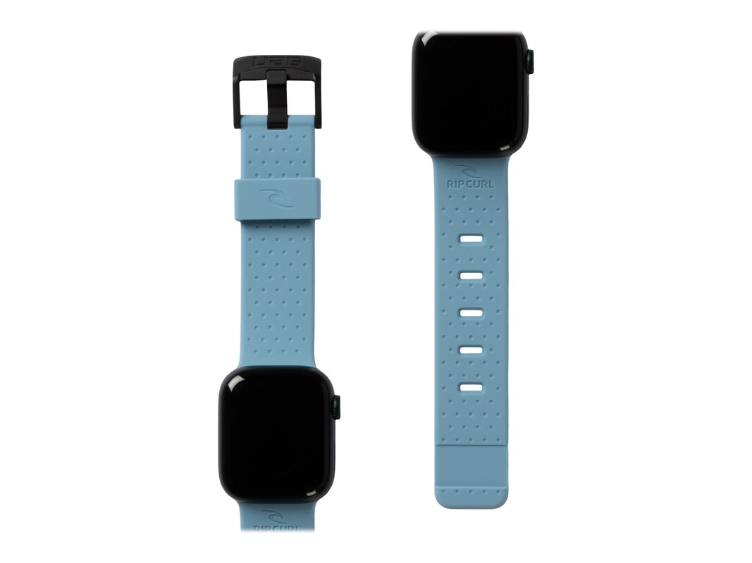 Surf, sport, style; the Trestles watch band made with Rip Curl and UAG is perfect for active individuals. Starring a lightweight soft touch silicone injection molded strap. Sweatproof and waterproof with a soft touch interior provides truly comfortable all-day wear. A Rip Curl branded looper. Secured by UAG with strong stainless steel custom hardware. A simple, sleek design looks great with a wetsuit or a suit.