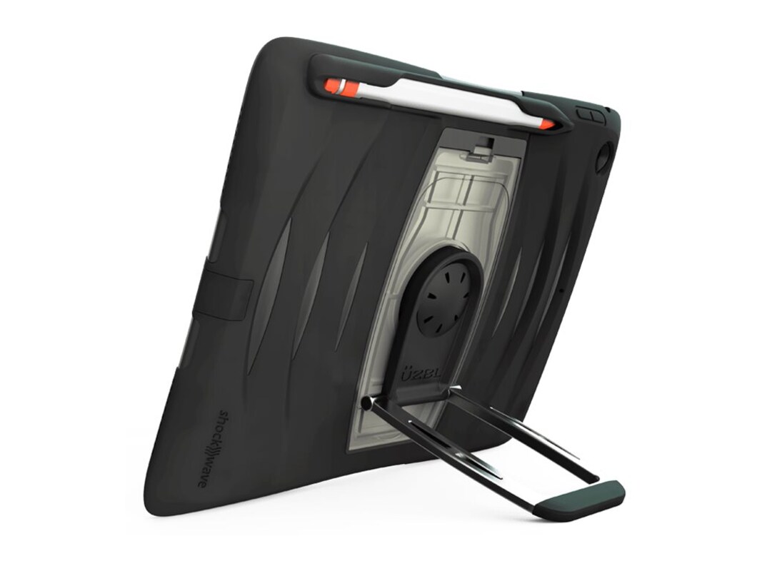 Our Flagship iPad Case. UZBL's top-selling case design for the 5th & 6th Generation 9.7 iPad. Designed from the top down for ultimate rugged protection with the convenience of a typical iPad case. It's a three-layer design that starts with a built-in screen protector, a silicone housing with deep silicone grooves that absorb impacts and pressure, a secure backplate for the iPad,, and lastly, a kickstand that is easily replaceable. The clip-in mechanism allows you to swap the standard kickstand for our hand strap or various other style stands.