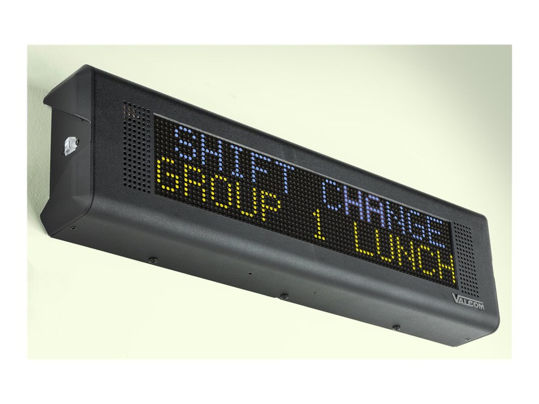 Valcom’s 20" 7-Color InformaCast IP Text Sign with Speaker and Flashers is a large easy to read display capable of single or dual-line text, built-in audio for high-quality paging/intercom, and dual-side mounted flasher for enhanced notifications in emergency situations. It provides high-quality voice paging, intercom, clock and customizable visual notification in an All-In-One IP Endpoint. Its the perfect choice for indoor spaces such as classrooms, offices, common areas, entryways and breakrooms.