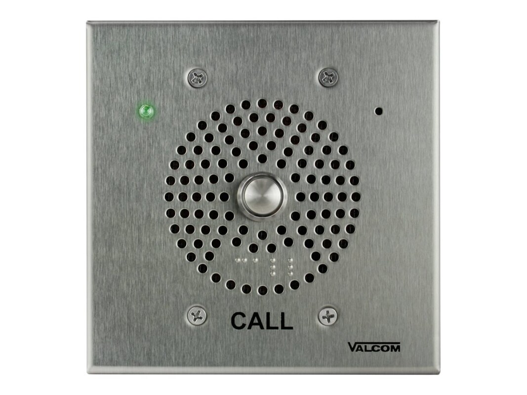 The Valcom VIP-176A IP intercom station is engineered for reliability and functionality in both indoor and outdoor environments. This vandal-resistant device features a durable brushed stainless steel finish that complements its robust construction. Equipped with a single button for easy operation, it supports two-way communication, ensuring clear interaction between users. The LED indicator provides visibility of the unit’s status, enhancing user experience, while Power over Ethernet (PoE) capability simplifies installation and power management. Designed for versatile use, the VIP-176A is SIP compliant, making it compatible with various communication systems. The support for DHCP and NTP time synchronization allows for streamlined setup and device management. With its operational temperature range from 0 °C to 40 °C and humidity tolerance of 0 - 85%, this intercom station is built to withstand a variety of environmental conditions, providing reliable performance wherever needed.