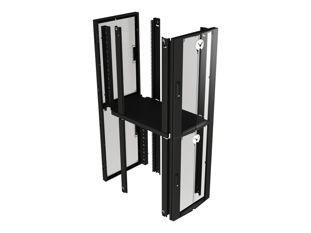 Upgrade your existing Vertiv VR Rack to a dual tenant rack to maximize your data center floor space. The Vertiv VRA9040 measures 600 x 1100 for 42U. All colocation kits include dual front and rear doors, secure cable management, and dividing panels.