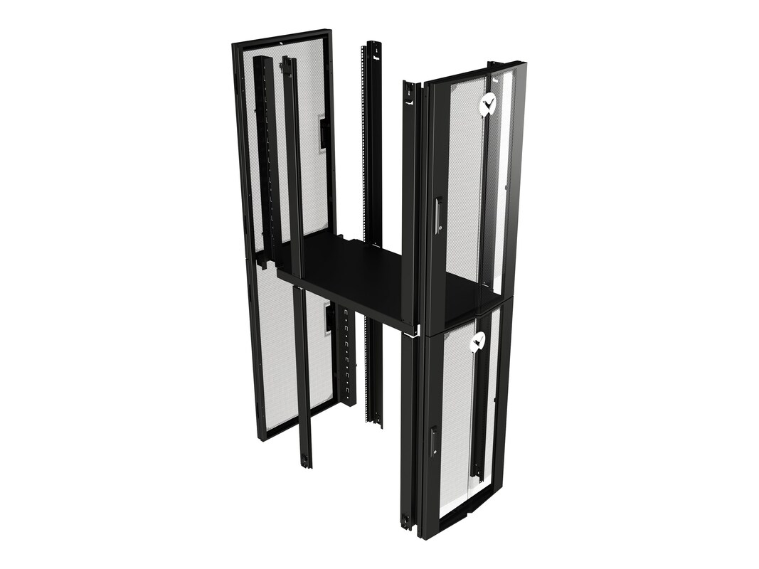 Upgrade your existing Vertiv VR Rack to a dual tenant rack to maximize your data center floor space. The Vertiv VRA9043 measures 800 x 1200 for 42U. All colocation kits include dual front and rear doors, secure cable management, and dividing panels.