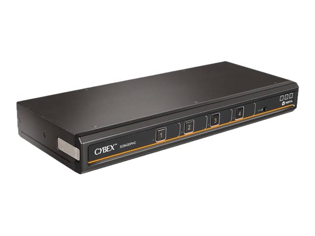 The Vertiv Cybex single head 4 port Secure Desktop KVM switch gives users access to up to 4 computers using a single keyboard, monitor and mouse. It comes with a Universal Display Port and provides the flexibility users need in managing content from multiple computers. The Cybex SC840DPHC-400 comes standard with a USB-C connector and meets the latest requirements for NIAP Common Criteria Protection Profile for Peripheral Sharing Switch v.4.0 certification.