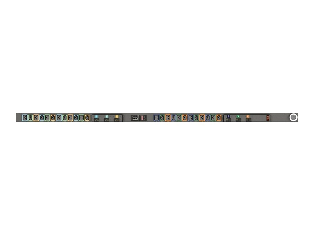 The Geist Outlet Level Monitoring EC power distribution unit from Vertiv is a sophisticated solution designed to meet the demanding power distribution and monitoring needs of modern data centers and IT environments. This unit features a rack-mountable design that integrates seamlessly into existing setups, offering 24 power outlets, including 12 x power IEC 60320 C13 and 12 x power IEC 60320 C19, to accommodate a wide range of devices.