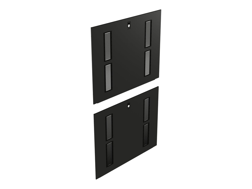 Pass-Through Side Panels can replace existing side panels and allow for cabling between racks, while also keeping them thermally separated. Brush strips included. The Vertiv VRA6054 is for 42U racks and measures 1100 mm.