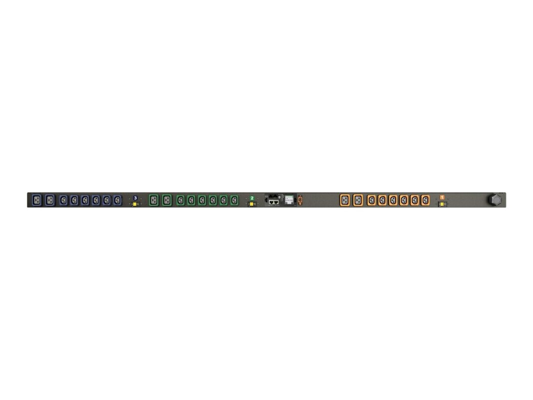 The Vertiv Geist Monitored Unit Level power distribution unit provides efficient energy management for high-performance environments. Designed for vertical orientation, this unit features a robust 3 m power cable and is compliant with multiple standards, including RoHS and FCC Part 15 A. Equipped with a total of 24 output connectors - 6 power IEC 60320 C19 and 18 power IEC 60320 C13 - this unit supports a maximum power output of 9.9 kW, suitable for a variety of applications. With advanced monitoring capabilities, including circuit/breaker current monitoring and overcurrent protection, users can maintain optimal power usage with confidence. The unit includes a rack mounting kit for easy installation, ensuring secure placement in data centers or server rooms. Remote management protocols such as SNMP, HTTP, and SSH allow for seamless monitoring and control from anywhere, keeping systems running smoothly with features like an LED display and internal RMS voltage and current sensors. The integrated circuit protection ensures stability and reliability, so users can focus on their core operations without interruption.