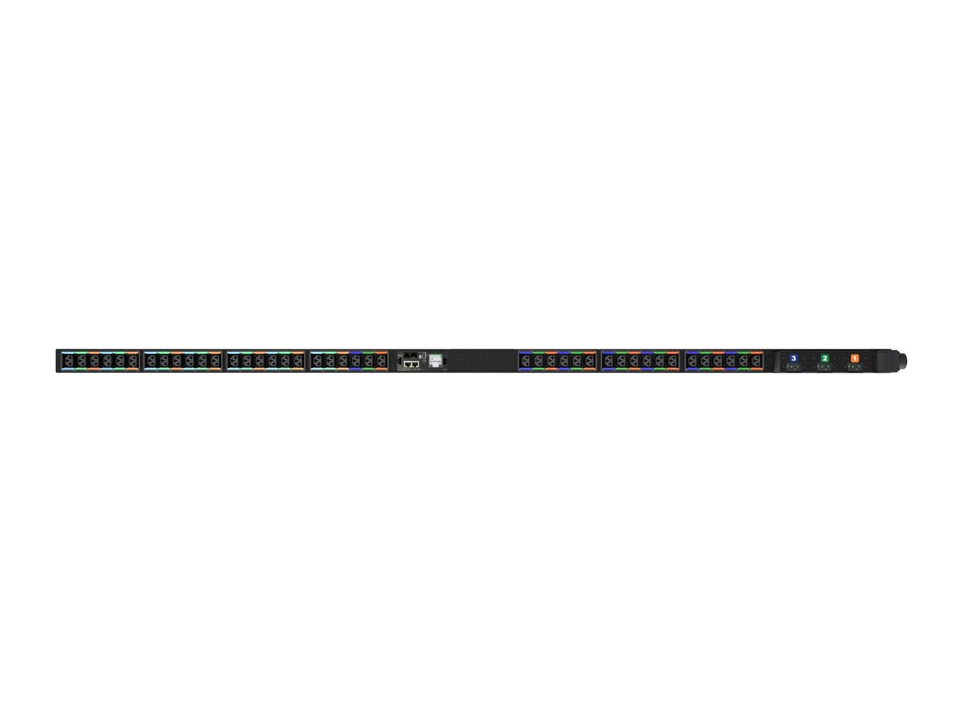 The Vertiv Geist VP4UU0A1 is a vertical rack power distribution unit with a universal input that supports common AC power configurations. It has (30) Combination C13/C19 outlets providing 11kW of power capacity. This unit can accommodate input power ranging from 16A-48A and 208V-415V in both single-phase and three-phase configurations. It helps simplify the rPDU procurement process since users can use a single model to work with different power sources. It is integrated with the Vertiv Geist Next Generation Interchangeable Monitoring Device (IMD). It has a 128x128 high-contrast LCD that displays the power usage. It features enhanced security with a secure boot that helps protect data and operations. It also has a redundant power-sharing port that connects two IMDs in the rack and provides backup power in case of power loss. The units are Dual Listed (UL/CE), TAA-Compliant, and individually tested for functionality and reliability.