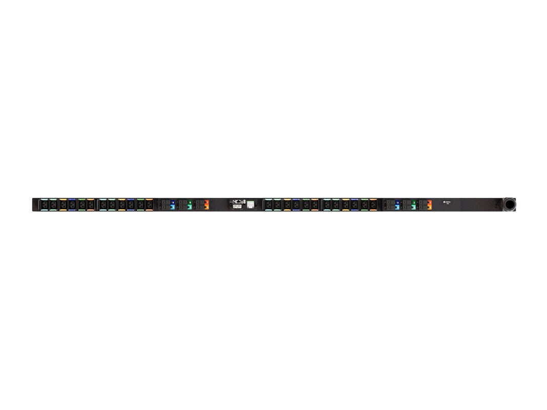 The Vertiv PowerIT Monitored Outlet Level High Density Rack Power Distribution Unit (rPDU) VP6U60A3 is an upgradeable, 60/63A, 240/415V WYE, 0U, vertical rPDU with input and outlet level monitoring. It has 24 Combination C13/C19 outlets that provide the flexibility to connect C14 and C20 plugs in the same outlet interchangeably. It also has a 3P+N+E (IP44) plug with 43.4kW of power capacity. The hot-swappable Interchangeable Monitoring Device (IMD-5M) has ports for serial communication and environmental monitoring, while the dual gigabit ethernet ports simplify the management of multiple PDUs with fault-tolerant daisy chaining or IP aggregation capabilities. This model is UL-listed and CE-marked, meeting an important requirement for data centers. It is also RoHS-certified and individually tested to ensure your network is powered by a reliable power distribution unit. Plus, it includes a three-year warranty that is extendable to five years if registered within 120 days of purchase.
