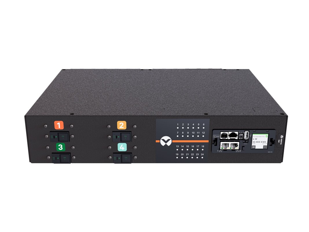 The Vertiv PowerIT Switched Outlet Level Monitored High Density Rack Power Distribution Unit (rPDU) VP7U62A0 is an upgradeable, 60/63A, 240V, 2U, horizontal rPDU with input monitoring and outlet level monitoring and switching. It has 24 Combination C13/C19 outlets that provide the flexibility to connect C14 and C20 plugs in the same outlet interchangeably. This unit also has a 1P+N+E (IP44) plug providing 14.4kW of power capacity. This model allows you to turn off outlets to avoid accidental overloads and remotely power cycle equipment to reboot unresponsive critical IT equipment. The hot-swappable Interchangeable Monitoring Device (IMD-5M) has ports for serial communication and environmental monitoring, while the dual gigabit ethernet ports simplify the management of multiple PDUs with fault-tolerant daisy chaining or IP aggregation capabilities. Plus, it includes a three-year warranty that is extendable to five years if registered within 120 days of purchase.