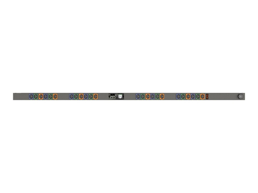 The Vertiv Geist Switched Outlet Level Monitoring power distribution unit is designed for efficient management of power systems. With a power capacity of 5.7 kW and multiple output connectors, including 24 power IEC 60320 C13 outlets, this unit ensures reliable power delivery to essential equipment. Its vertical orientation is ideal for optimization in rack-mounted environments, making it a practical choice for technology infrastructure. The diverse management interface options, including USB, RS-232, and Ethernet, facilitate seamless integration and remote management capabilities, ensuring that users can effectively monitor and control energy usage.