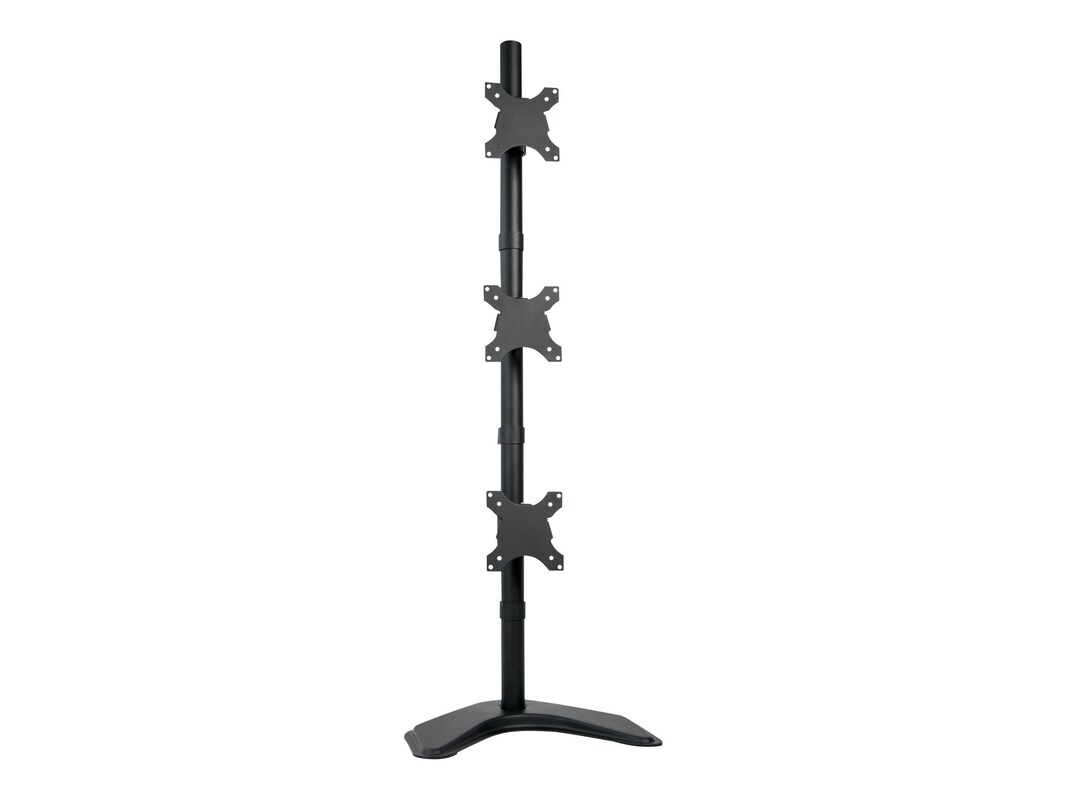 The free standing vertical mount for 3 monitors is made of high grade steel and aluminum. Every joint is able to be tightened, so you can adjust exactly how fluid/stationary you want everything, simply remove the cap on the joint and tighten the bolt underneath.