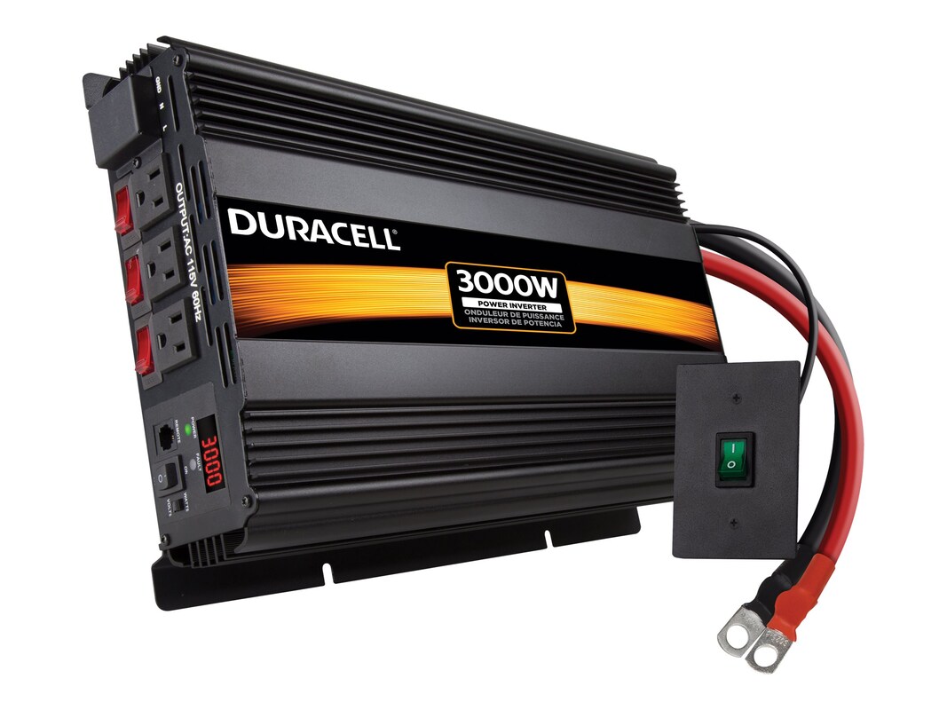 Duracell 3000 Watt inverter supplies continuous power using your car's battery current. This inverter converts vehicle power into usable household AC and USB current. 3-prong AC outlets are provided to charge and operate several devices at once, powerful enough for entertainment equipment, handheld tools, large household appliances and electronics.